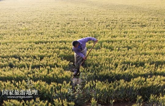 5月20日,河南省安陽市內(nèi)黃縣城關(guān)鎮(zhèn)農(nóng)民在麥田里勞作。