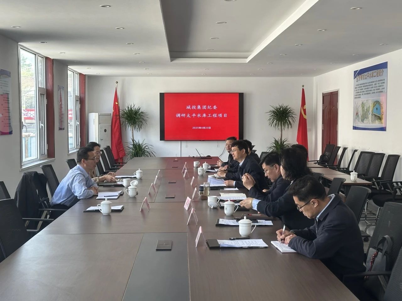 ? ? ??4月23日,濟(jì)南城投集團(tuán)黨委委員、紀(jì)委書(shū)記、監(jiān)察專員李凱,紀(jì)委副書(shū)記陳朝暉一行到濟(jì)南市太平水庫(kù)工程圍繞深入貫徹中央八項(xiàng)規(guī)定精神學(xué)習(xí)教育、黨風(fēng)廉政建設(shè)開(kāi)展情況進(jìn)行調(diào)研,深入了解工程建設(shè)情況,同時(shí)對(duì)工程建設(shè)招標(biāo)投標(biāo)領(lǐng)域突出問(wèn)題進(jìn)行檢查。清源水務(wù)集團(tuán)領(lǐng)導(dǎo)班子及相關(guān)部室負(fù)責(zé)人陪同調(diào)研。